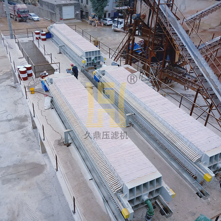 久鼎全自动压滤机厂家介绍一下久鼎全自动压滤机的工作流程:打开进料泵给压滤机进料,将物料送入过滤室,逐渐形成泥饼。固体部分留在滤布表面(滤布覆盖在每块滤板外面),液体部分渗入滤布,沿滤板上的导流槽流向滤液出口。开始时过滤压力低,随着滤饼的逐渐形成,滤室内的压力逐渐升高,泥饼被挤压脱水。