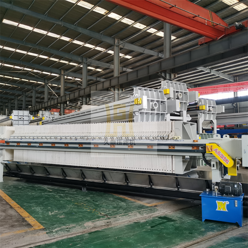 1.自动拉板厢式压滤机利用自动拉板装置,可在压滤完成后,自动进行卸料,节省人力成本,实现自动化。